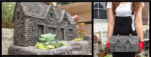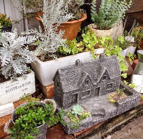 ミニチュアモルタルハウス多肉植物用 ガーデンアイテム販売 モルタルデコ モルタル造形埼玉