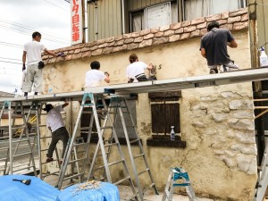 代表の横山さんから朝、この壁を2日でエイジングまで終えたいとの