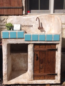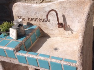 その中でも1番人気のあったブルーのタイルが素敵なガーデンシンクです。