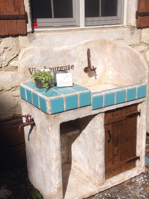 ブルーのタイルがとっても可愛らしい☆シャビーガーデンシンク☆ 2台限定販売