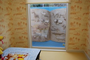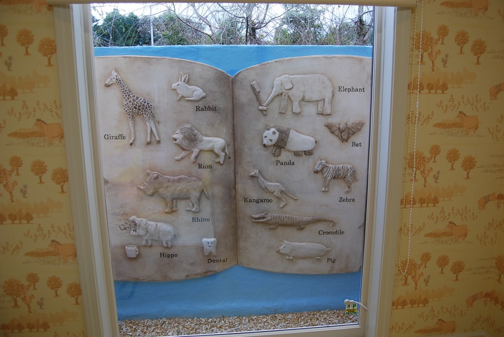 特にキッズのお部屋は大きな絵本を立体的にモルタル造形で表現いたしました^^