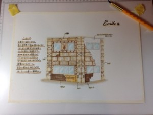 今日は工房★図面製作。 お菓子の家のビスケットやクッキーの原寸大図面を作ります。 お菓子の造形、楽しそうだね! そんな簡単なもんじゃありません! 建物の寸法を入念に計って、ビスケット、クッキーなどの割り付けを計算。目地も入るので寸法を計算するのだけでも大変です。 そこからさらにビスケットの山の数を計算して図面を作っているところです。正直、頭使います。 モルタル造形と言ってもサッと造形に入れるものもあれば、このようにキッチリとした計算をもとに造り上げるものもあるのです。 まぁ、ここまでやる人もいるのか?はわかりませんが、ミズムラは段取り、準備から魂込めてますので(^ ^)