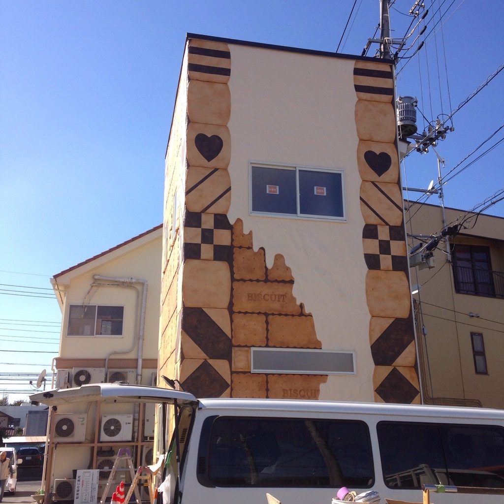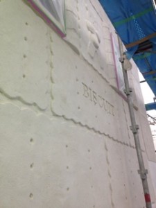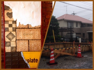 美味しそうに焼けたかな?(^^) 来月下旬くらいから予定のお菓子の家の壁のサンプル★600×900 もちろんモルタル造形! お菓子の焼きムラ、チョコレートの銀紙まで悩みながら試作。本番では段取り命のミズムラ。 入念に準備するのは僕のこだわり。 なっとくいくまでね(^^) 実際の壁にはこれより遥かに大きなお菓子になるので迫力ありますよ(^^) 子供から大人まで食べたくなるように試作を繰り返します! 本番はさらにリアリティを追求したモルタル造形をお見せしましょう! 飛田ホームさん、宜しくお願いいたします! 台風は過ぎ去りました…。物凄かった。 でもまだまだ雨は降るらしいです…