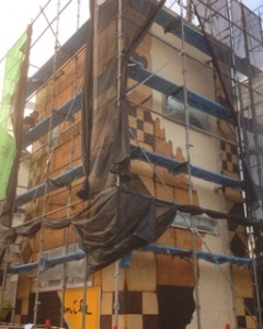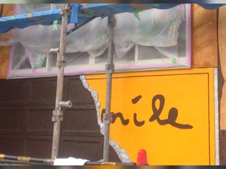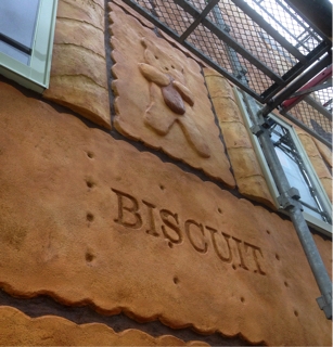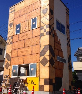 お菓子の家のモルタル造形★ 大きな大きな板チョコが出来ました。 この大きさだと千人分くらいあるかな?食べきれないね(^ ^) こだわりはもちろんチョコのリアリティと、紙が破れてる感じかな! 銀紙の部分は最後に光沢のあるシルバー塗装をかけます。 emileのmileだけ見えるにくい演出★ 足場越しだけど色んな方から声をかけていただいてます(^ ^) 造り手にとって何より嬉しいのは見て喜んでいただいたり感動していただけること。 とくにちびっ子達の喜ぶ顔は本当に嬉しいですね