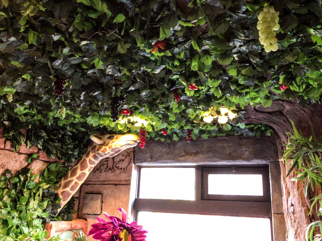 今回はキリンさんがブドウを食べにやってきたテーマで