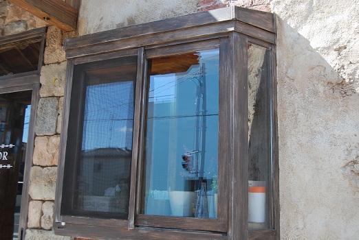 グリーンの窓はもちろん、窓下の台まで全てモルタル造形です。