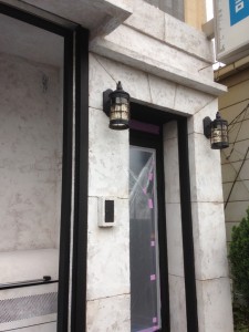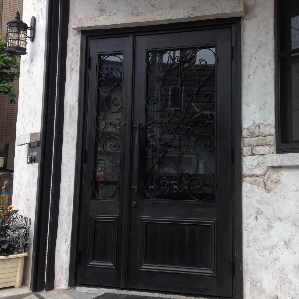 新たに作った玄関です。以前はここに何もありませんでした。 壁を作って、オーダードアを設置。 そしてモルタル造形。 白と黒のコントラストが非常に落ち着いていてかっこいい^^ これぞシンプルアンティーク仕上げの極みです。