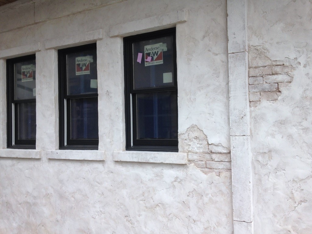 この3連のアンダーセン窓も素敵です。 さりげなく控えめに入れた煉瓦は今回は脇役で十分。アクセントでいい感じ。 このシンプルアンティークに何年もずっとこだわてきたのは当社だけ^^ 絶妙な色加減が非常に難しいので真似のできない当社オリジナル造形です。