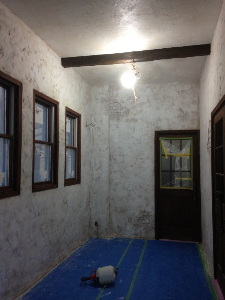 役物の造形を終え、プラスターを施しました。 真っ白の壁になりました。このままでもいいくらいお洒落な雰囲気ですが ここからエイジングすることにより、深みがでてより シンプルアンティークが引き立ちます。 造形はシンプルほど表現が難しいこともあります。 センスも大事。