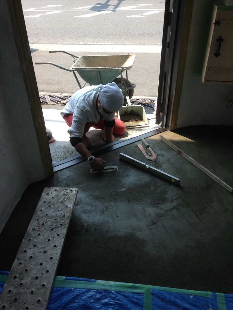 さてさて、まずはタイルを貼るための準備とでもいいますか。 固めの材料で平らをだしています。ミリ単位の仕事はほんと難しいですね。 でもこの作業をしっかりおこなわないとタイルをバチット貼れないので丁寧に。 なんとか無事に作業を終え、腰が相当ヤバいミズムラなのでした。。
