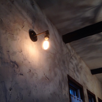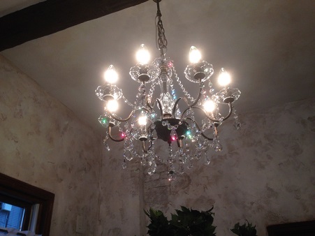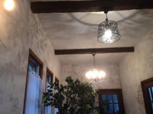 内装追加画像UP シャンデリアがつきました! ガラスが大変綺麗に光り輝て 思わず見とれてしまいました^^ 空間がアンティークでエレガントになりました。優しい雰囲気で お客様を迎えてくれると思いますね^^