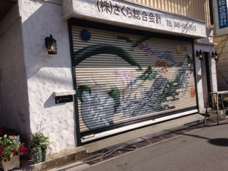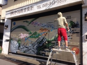 ご依頼はこのシャッターの塗り替えになります。 このシャッターの絵はスプレーアートの方が描いたそうで、これはこれで素晴らしいのですが、僕の造形の外観にはたしかに合わないですね(⌒-⌒; ) 忍びない気もしますが、思い切って塗らせていただきます!