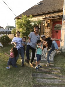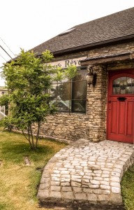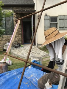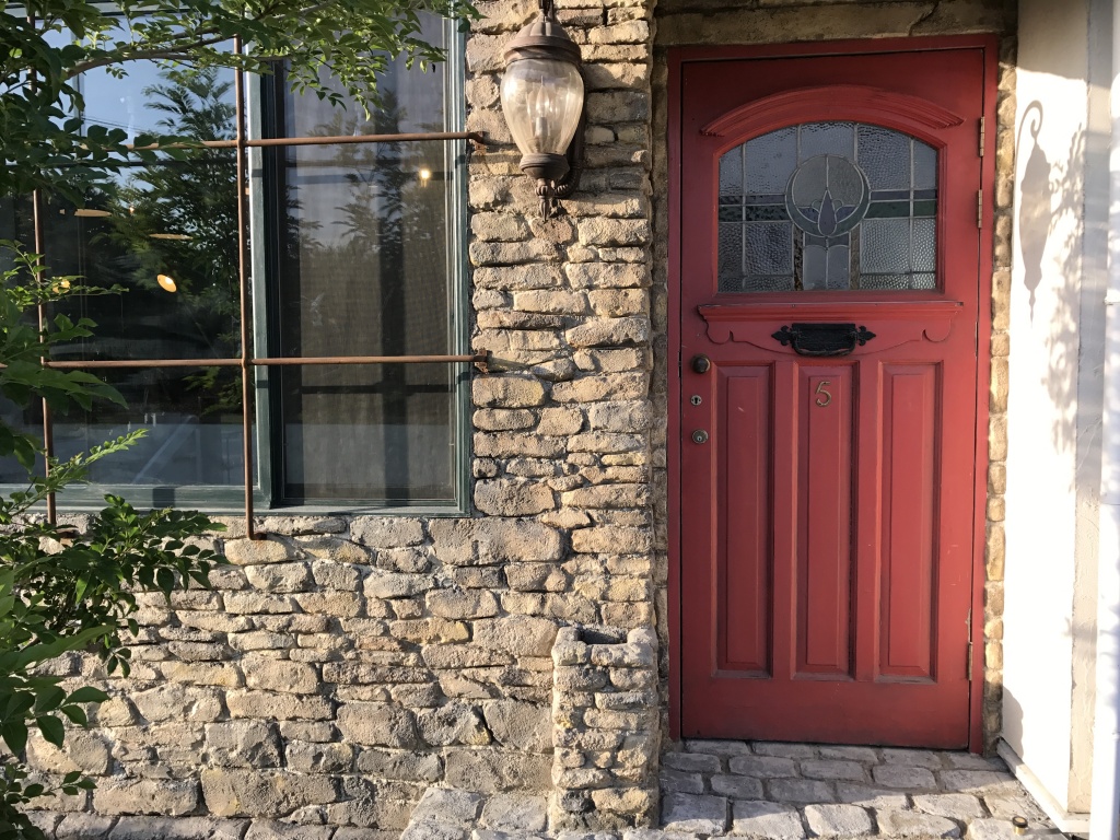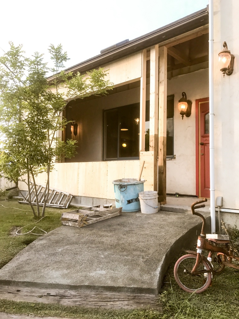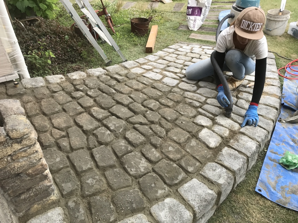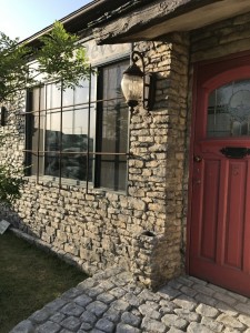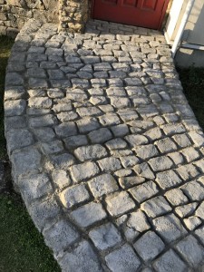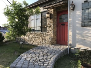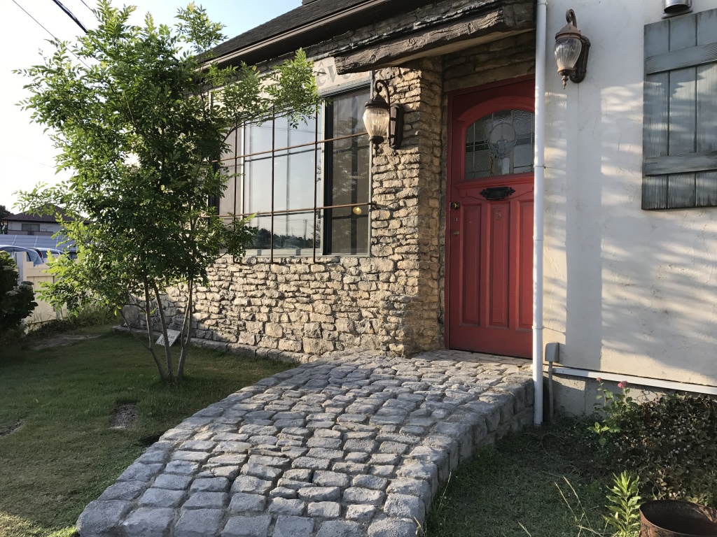 そして石畳。手作りのビンテージ加工したアイアンの柵。