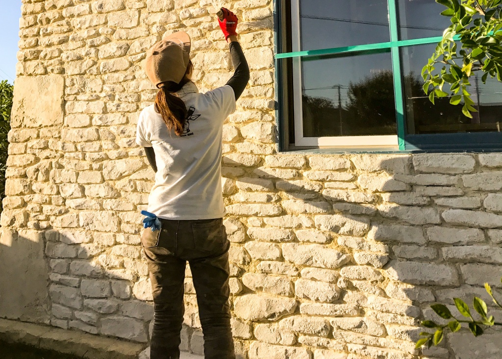 モルタル造形で仕上げました。コッツウォルズの壁面。