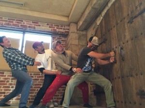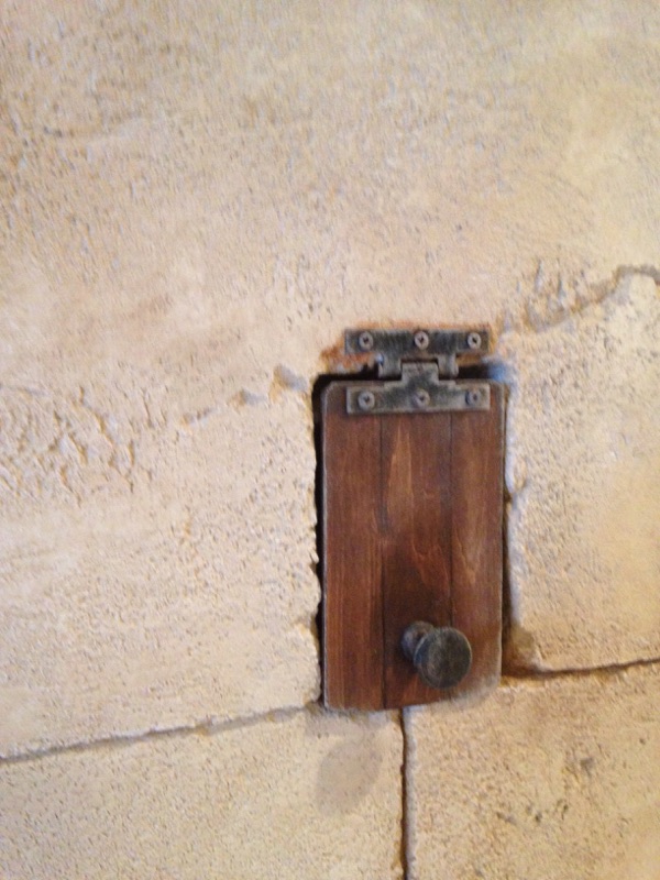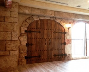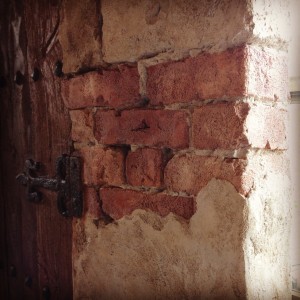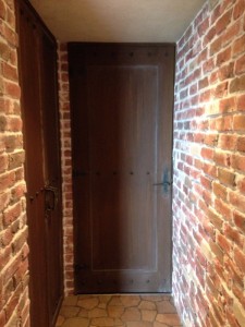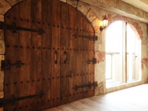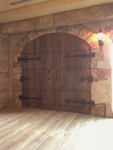 今にも開きそうな城壁の扉 木・ヒンジ・鋲・石・煉瓦・モルタル造形