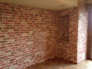 凹凸のある煉瓦は実際見ると迫力あります。施工は大変でしたが仕上がりは最高です。