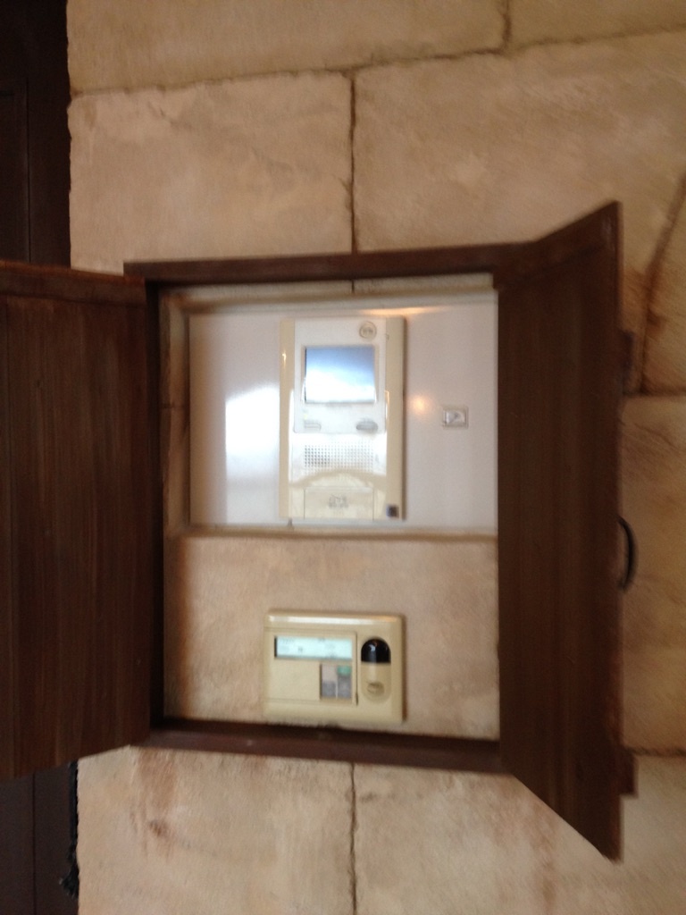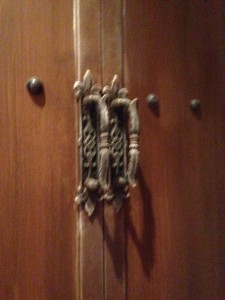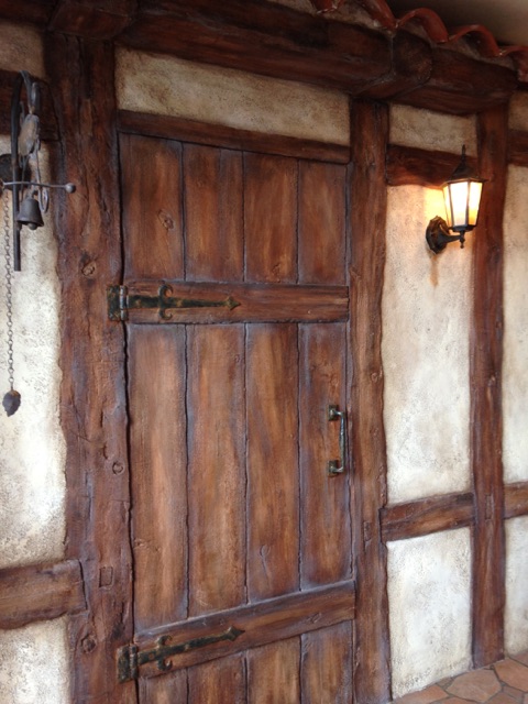 木を主体としたモルタル造形。アンティーク感が際立ってます。今にも開きそうな造形のドア。