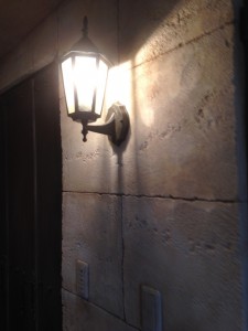 外灯もガラス部分もエイジングすることで雰囲気を合わせています。
