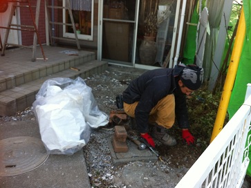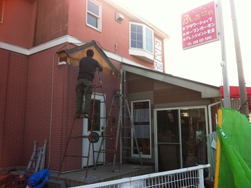 場所が場所だけに非常に困難でした。既存の建物に絡ませる形での制作。