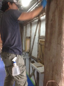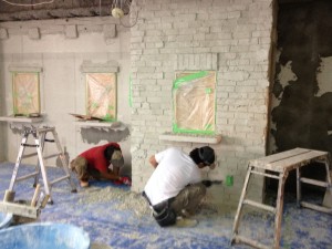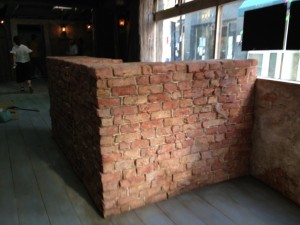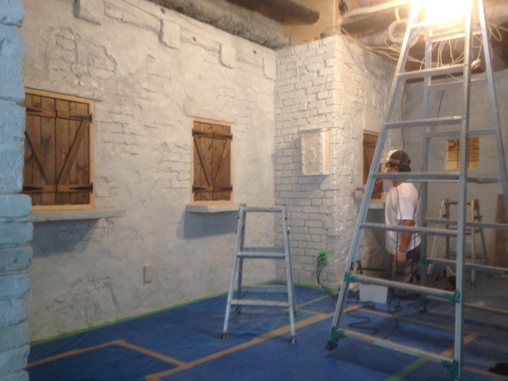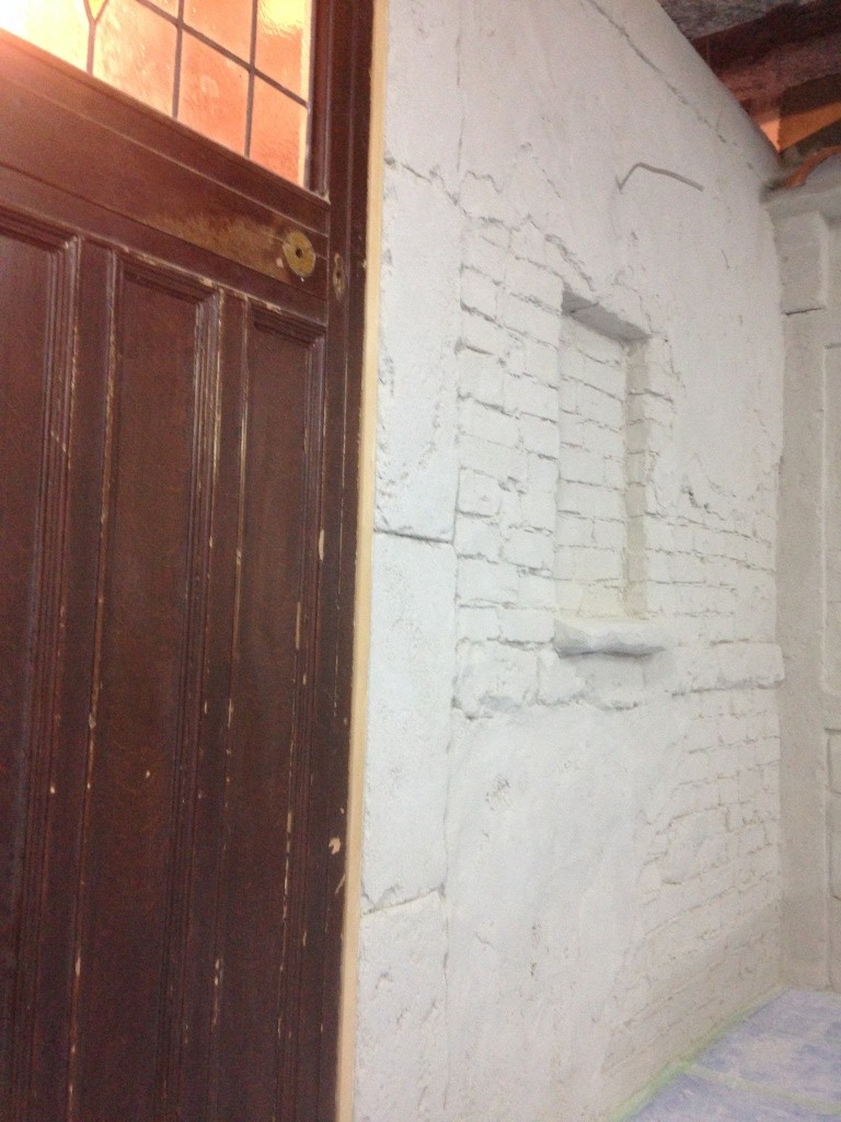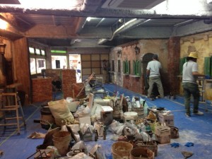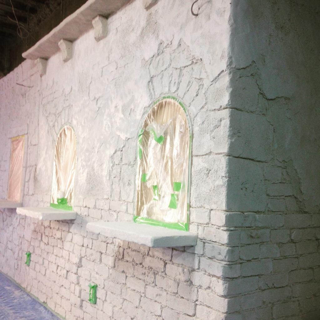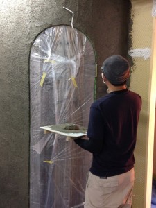 なんだかんだ言ってもやっぱ一番大変なのはモルタル・カービング。練って運んで塗りつけて削る。この繰り返し。全身真っ白になりながら。粉まみれになって。それでも頑張る。使った材料トータルで260袋。全て手練り。よく頑張りました。