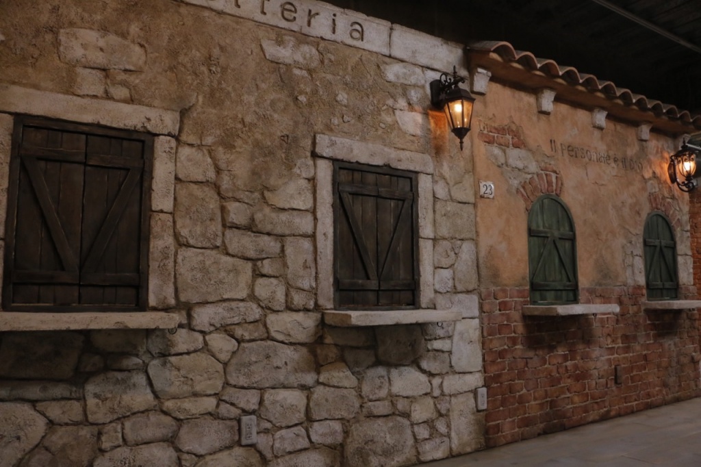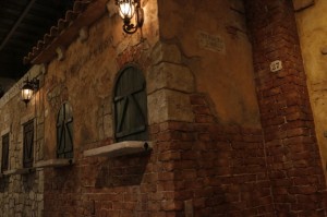 イタリアの古き良き町並。路地。中庭。