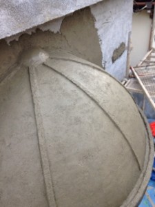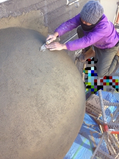 引き続きお世話になっています 久喜市林写真館さまワクワクスタジオよりお伝えします。 ドーム型の内側を塗るのは本当に大変。 なにしろ平らじゃないからね。 まん丸◯ 特殊なコテを使わないとまず無理です。 あ~くっ首が… グキッ