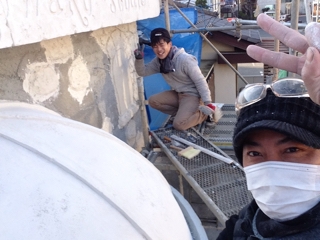 僕はドーム屋根をカービングで整えました。Rが難しい! けど下地さえしっかりとキレイに強度を出して作れるかが勝負でした。 最近は嫁との夫婦造形が阿吽の呼吸で動けてます(^^) 病気になってからずっと現場に出てくれて本当に感謝しています
