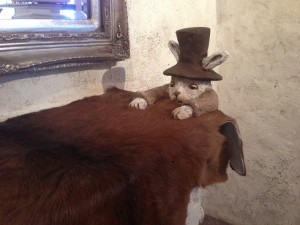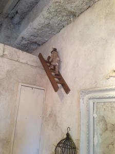 ぶら下がったウサギ。階段梯子を上るウサギ。