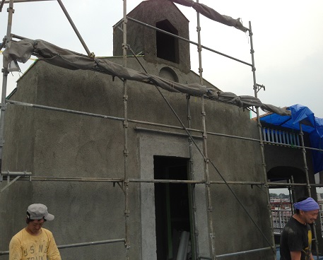 スタジオラヴュー様 大宮区土手町にあります本店の改修工事で今回、屋上のモルタル造形の仕上げの