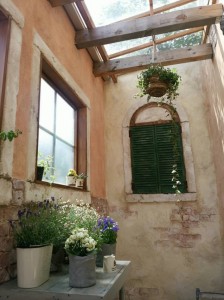 ベネチアンな空間とガーデニング。モルタル造形と緑は相性抜群なので