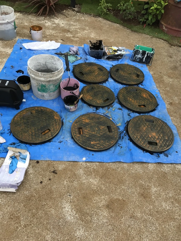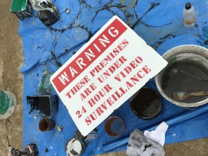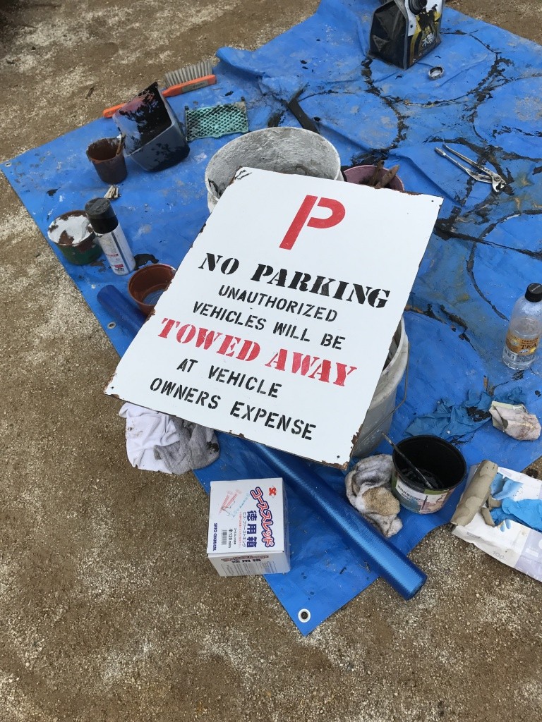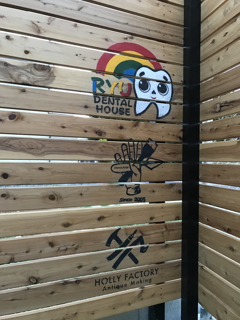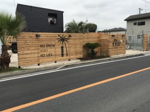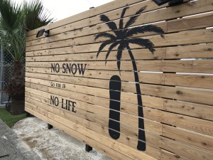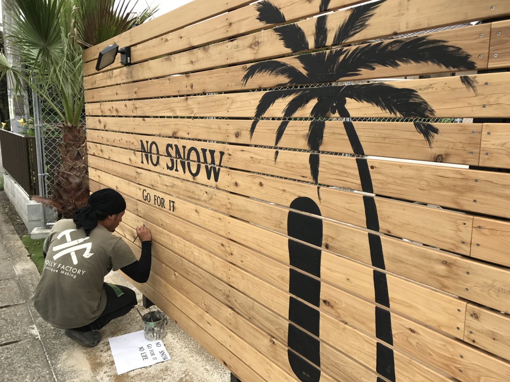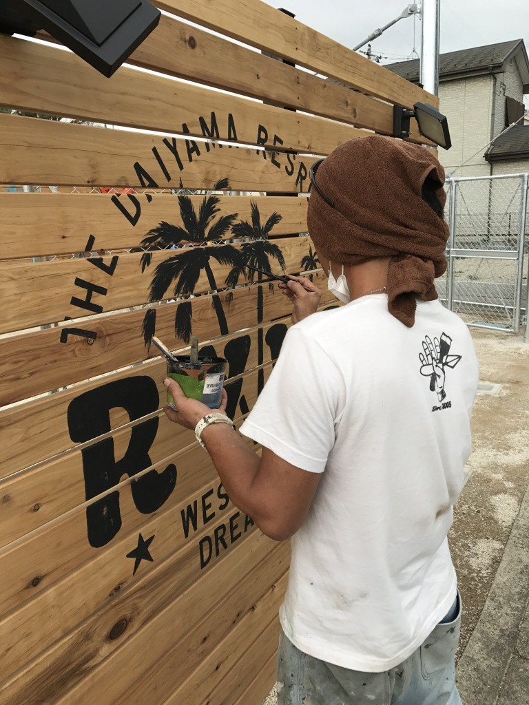 ウッドフェンスの上へフリーハンドで文字や絵をペイントさせていただいたり、