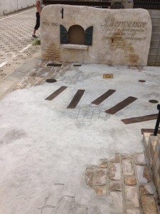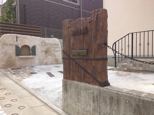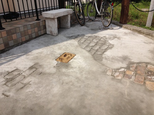 ご提案させていただきました。特に駐車場のアンティーク仕上げは