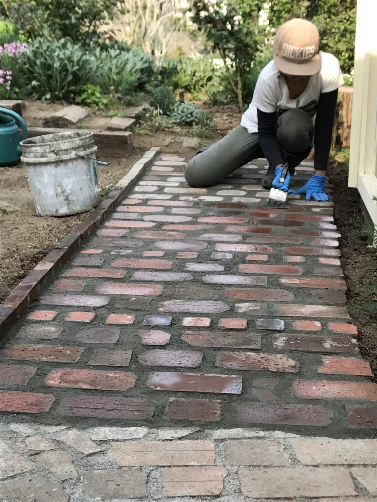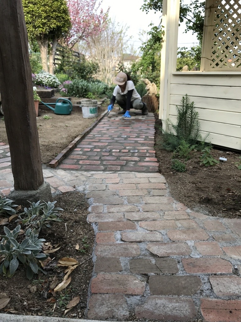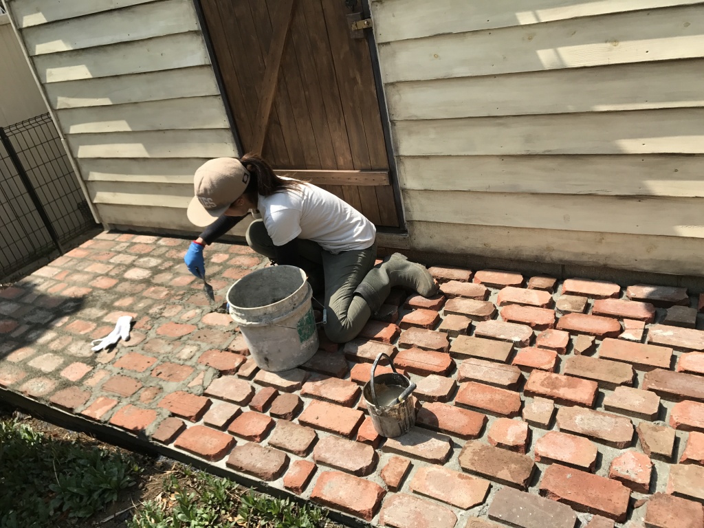 ご依頼内容は煉瓦の小道を庭に作る!