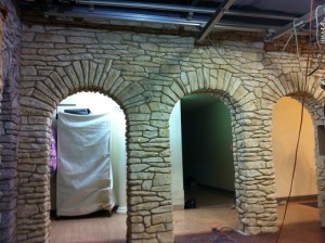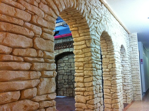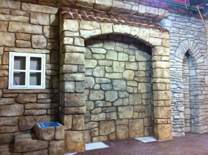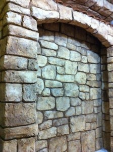 2つ目は大人気アニメ羊のショーンにでてくるような石積みのお家・壁の表現。