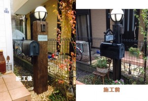 埼玉県 朝霞市 H様 既存門柱リメイク モルタル造形枕木風